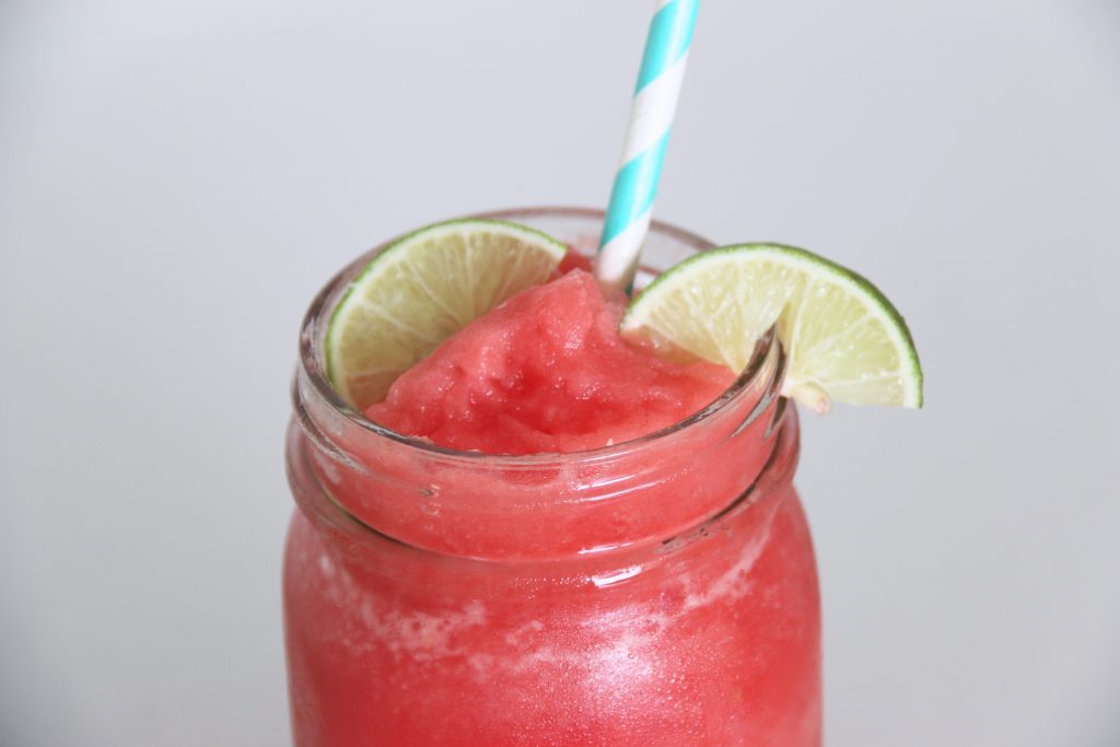 Put everything in a blender and mix until it has the consistency of a thick icy smoothie. Add more juice if needed. Since my limes were not really juicy so I squeezed in some additional lemon juice.
